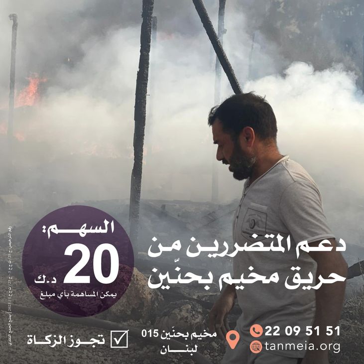 وفي ظل الظروف والأزمات الاجتماعية والاقتصادية التي تشهدها لبنان منذ سنوات، بجانب تواجد حوالي مليوني لاجئ سوري بمخيمات اللاجئين في لبنان؛ كان لزامًا علينا أن نفزع إلى دعم وإغاثة إخواننا المتضررين من الحرائق؛ انطلاقًا من قول النبي ﷺ: "المسلم أخو المسلم، لا يظلمه، ولا يسلمه، من كان في حاجة أخيه؛ كان الله في حاجته، ومن فرج عن مسلم كربة؛ فرج الله عنه بها كربة من كرب يوم القيامة، ومن ستر مسلما؛ ستره الله يوم القيامة"، وعملًا لرسالتنا التنموية وأهدافنا الإغاثية والإنسانية.
