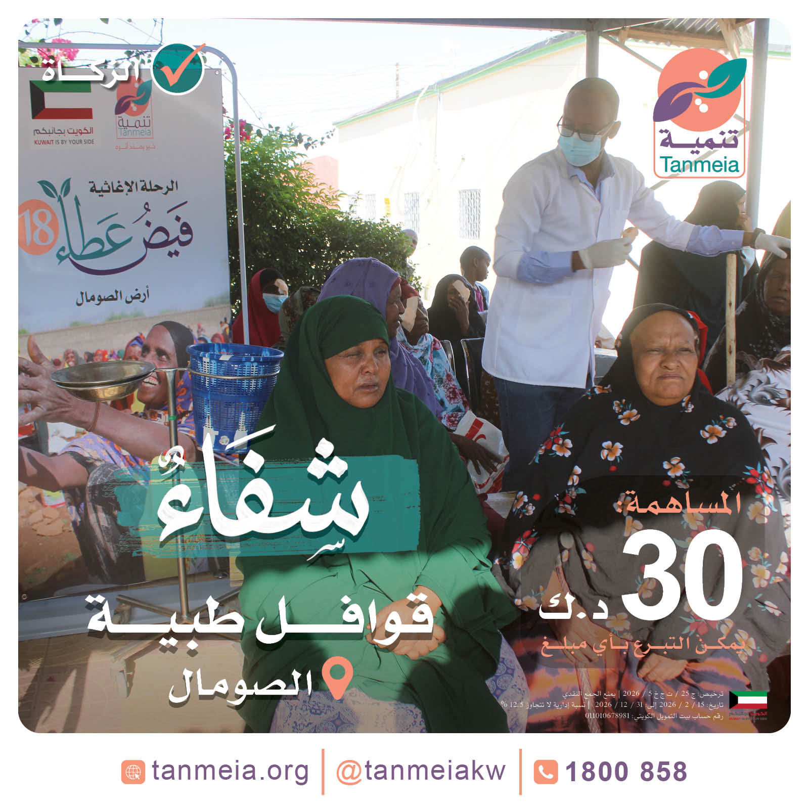 يواجه الصوماليون أوضاعاً صحية متردية مع قلة المستشفيات والأدوية.، ويهدف المشروع إلى تسيير قوافل طبية تشمل الفحص الطبي، وتوزيع الأدوية، وإجراء عمليات صغرى للمحتاجين.
