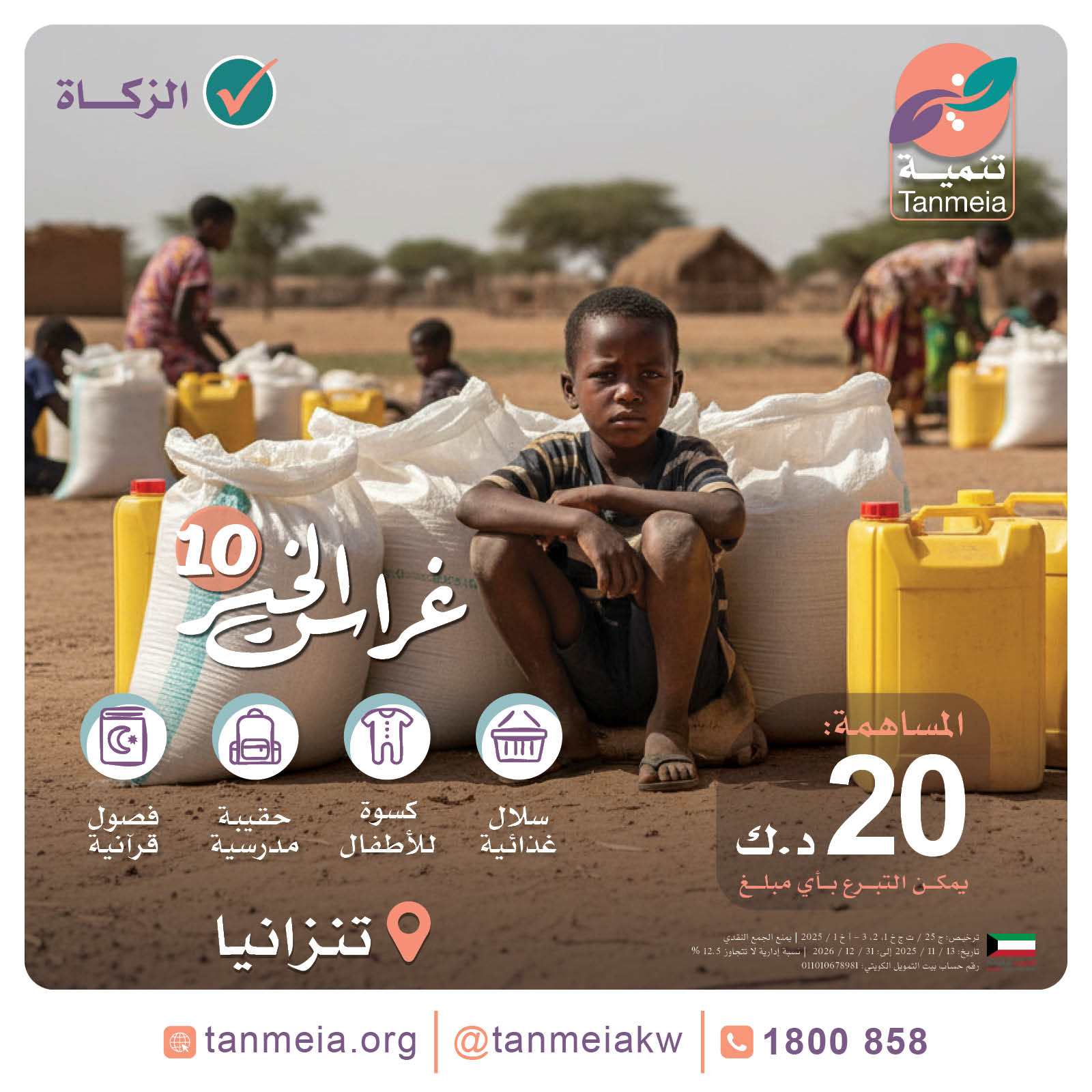 في قرى نائية من تنزانيا، يعيش آلاف الأسر تحت وطأة الفقر المدقع، تعاني من قلة الغذاء، وافتقار الأطفال إلى أبسط مقومات التعليم والكسوة، ومدارسٌ تفتقر إلى الصيانة والمرافق الضرورية. هناك حيث الحاجة تنادي والقلوب تنتظر الأمل، تمتد يد الرحمة عبر مشروع "غراس الخير 10" من جمعية تنمية الخيرية، لتزرع بذور الخير وتنثر الأمل في حياة المحتاجين.