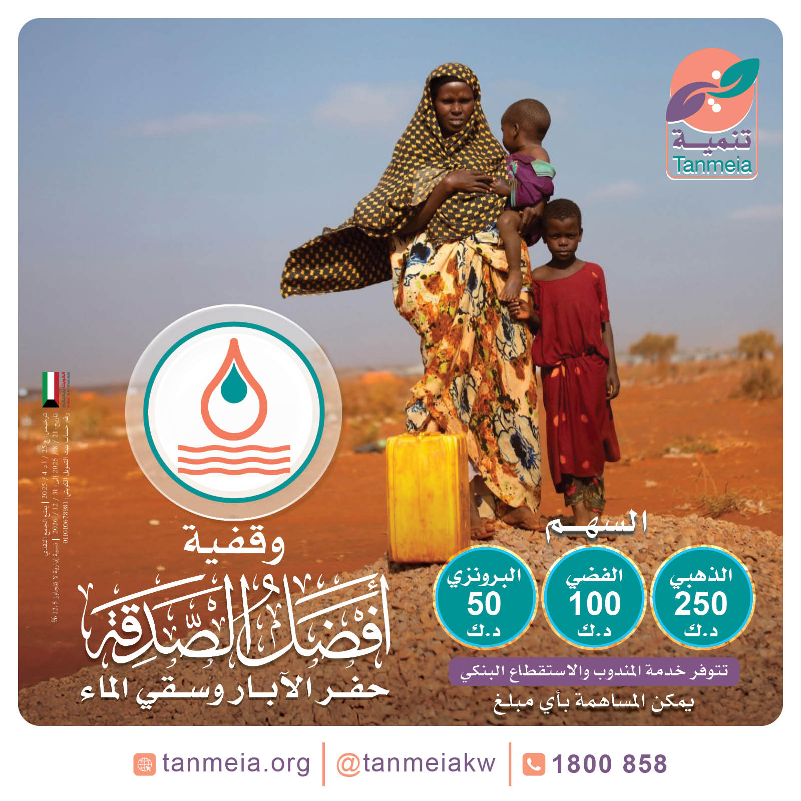 تأتي وقفية حفر الآبار وسقيا الماء التي أطلقتها جمعية تنمية الخيرية لتكون موردًا ماليًا دائمًا يُصرف ريعه على مشاريع حفر الآبار وتوفير الماء النظيف في المناطق الأشد معاناة من ندرة المياه أو تلوثها.